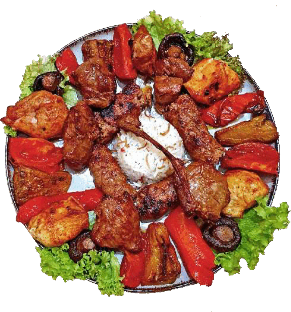 мікс з баранини та яловичини / мікс сирів сулугуні та бринзи / сир сулугуні, заправлений вершками, шпинат